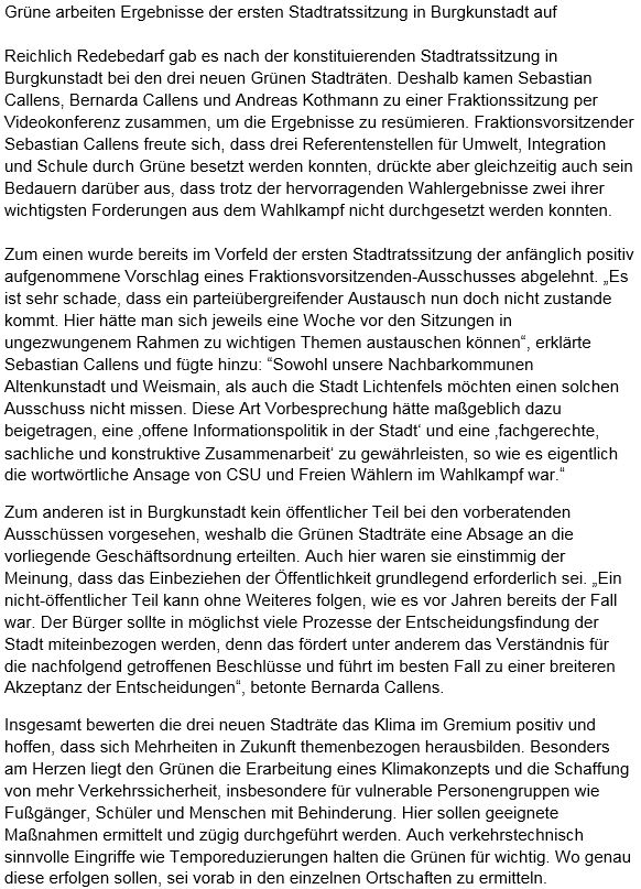 In der ersten Sitzung des neugewählten Stadtrats erhält die Grüne Fraktion drei Referentenstellen: